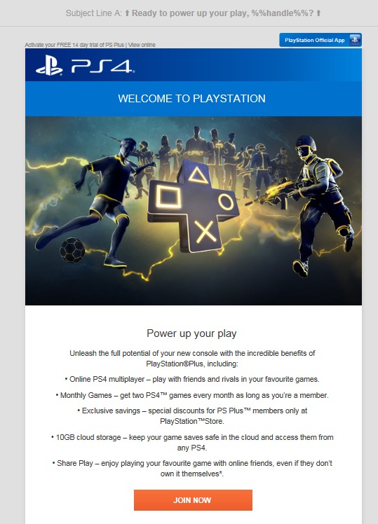 22nd January 2018 PS Welcome email Created PlayStation Plus welcome tigger email outlining all consumer benefits of the service.