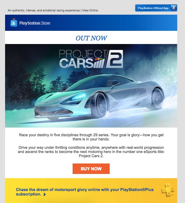 25th September 2017 ECRM - Project Cars 2 A launch email to support third party title - Project Cars 2.