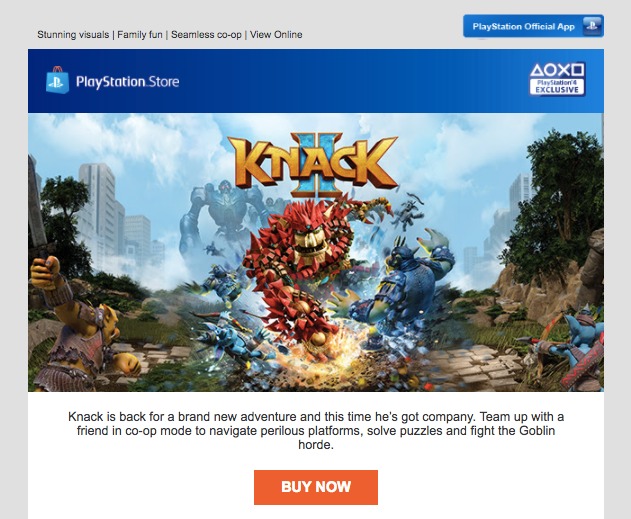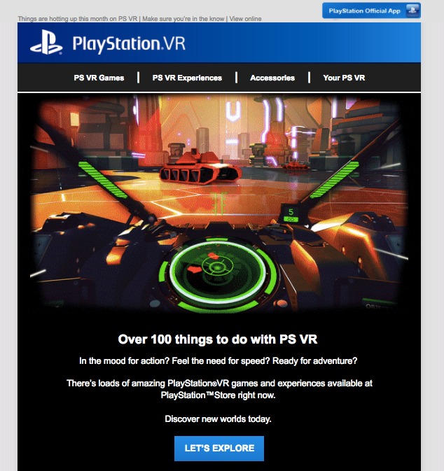9th January 2018 ECRM - PS VR An email campaign to support PlayStation VR and increase awareness of all its capabilities.